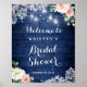 Rustic Blue Mason Jar String Lights Floral Bridal Shower Sign Poster.