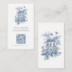 Rustic Blue Toile De Jouy QR Code Wedding RSVP. A blue toile de jouy floral design is above the text and your QR code on the front and larger on the back.