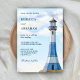 Rustic Blue Watercolor Lighthouse Nautical Wedding Invitation