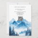 Rustic Blue Watercolor Mountain QR Code Wedding Invitation