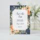 Announce your wedding with rustic elegance using this Save the Date card featuring watercolor florals in navy blue, peach, and ivory tones. The modern script and classic layout make it perfect for rustic weddings or garden ceremonies. Fully customizable with your names, date, and event details.