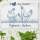 Rustic Blue & White Chicken, Hen Personalized Kitchen Towel