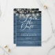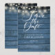 Rustic Blue Wood String Lights Script Wedding Save The Date