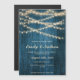 Rustic Blue Wood String Lights Wedding Invitation . This exquisite invitation seamlessly combines rustic charm and timeless elegance, setting the perfect tone for your special day.