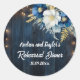 Rustic Blue Wood White Floral Rehearsal Dinner Classic Round Sticker