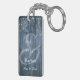 Rustic Blue Wood, White Light Strings Mr & Mrs Keychain