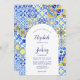 Rustic Blue Yellow Arch Portuguese Tile Wedding Invitation