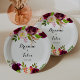 This rustic blush burgundy floral wedding cake paper plate is perfect for a simple wedding reception. The design features pink, blush, red, burgundy and bordo watercolor flowers with green foliage. Make it your own by adding the names of the bride and groom and wedding date.