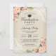 Rustic Blush Floral Lace Burlap Graduation Party Invitation