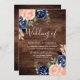 Rustic Blush & Navy Blue Flowers Wedding Invitation