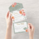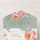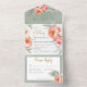 ALSO AVAILABLE WITH A QR CODE TO SCAN IN THE RSVP AREA. Soft and romantic, this design features blush peach and white peonies on a soft sage green watercolor background. Personalized All-In-One invitations are a unique combination of both a beautifully printed custom invitation with an easy to tear off perforated RSVP postcard. And they are so easy to use! You simply fold, then seal the back flap with the three included clear stickers, and mail. And when your guests receive your custom invite, they just tear the perforated RSVP Card off and drop it back in the mail to you!