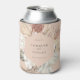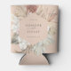 Beautiful rustic boho-chic dried palm fronds, roses and orchid geometric frame on pink sand color background, personalized can cooler. Designed to match our Bohemian Oasis Wedding Collection.