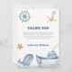 Nautical baby shower theme, Ahoy! It's a boy baby shower, celebrate upcoming baby shower with our navy blue cute rustic modern watercolor nautical sailboat, anchor, starfish, ocean whale, wheel in beige color, backside with stripes pattern. You can personalize your own text and color via "personalize this design".