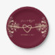 Add a touch of rustic elegance to your wedding celebration with our chic boho floral burgundy party paper plates. Personalized with the names of the bride and groom, along with the memorable date, each plate features a shimmering gold rope heart intertwined with gilded floral lace, creating a charming tableau for your special day. Let every detail reflect the beauty of your love story.