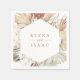 Beautiful rustic boho-chic dried palm fronds, roses and orchid geometric frame, personalized paper napkins. Text font style, and color can be customized. Designed to match our Bohemian Oasis Collection.