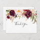 This rustic boho colorful floral thank you postcard is perfect for modern wedding. The design features pink, purple, red, and burgundy watercolor peonies clustered into elegant bouquets with green foliage, inspiring natural beauty.