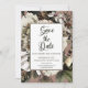 An ethereal boho floral bouquet in shades of winter white and dusty pink with seasonal evergreen greenery is underlaid over a dusty pink background inviting your guests to "Save the Date" for what is sure to be a memorable rustic wedding occasion. The back features a dark evergreen background. Text color is dark evergreen. Simply add your names and wedding details to complete. "Save the Date" text can only be edited by designer, but remaining text is editable. Composite design by Holiday Hearts Designs (rights reserved).
