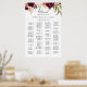 This rustic boho floral alphabetical seating chart is perfect for a modern wedding. The design features pink, purple, red, and burgundy watercolor peonies clustered into elegant bouquets with green foliage, inspiring natural beauty.