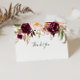 This rustic boho floral folded wedding thank you card is perfect for a modern wedding. The design features pink, purple, red, and burgundy watercolor peonies clustered into elegant bouquets with green foliage, inspiring natural beauty.