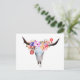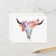 A cascade of painted flowers decorates the horns of a rustic longhorn skull.
