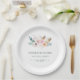 These trendy and rustic grad party paper plates feature a boho bouquet filled with watercolor flowers and feathers.