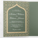 Rustic Boho Indian Lattice Arch Sage Green Wedding Tri-Fold Invitation