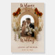 Imagine your guests stepping into your celebration and being greeted by a sign that feels less like décor and more like a snapshot of your love story. This rustic boho wedding welcome sign foam board features a floral arch overflowing with pampas grass, sunflowers, fan palms, and autumn blooms in earthy tones of burnt orange, golden yellow, deep red, and muted green—colors that radiate warmth, romance, and seasonal charm. The ivory neutral backdrop lets the bold fall palette shine, striking the perfect balance between cozy and elegant. A central customizable space makes it easy to add your own couple photo, names, date, or message—so it’s not just pretty, it’s personal. Whether you’re planning a barn wedding, outdoor fall ceremony, or bohemian reception, this personalized welcome sign is the kind of detail guests will remember long after the party…ready to make it the first thing they’ll fall in love with.