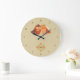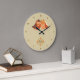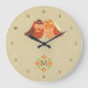 Cute lovebird owls are the stars of this modern rustic clock, a great gift for newlyweds. The owl groom is wearing a fedora and bowtie and the owl bride is wearing a flower garland headband. The back is adorned with repeating flower graphics for a bohemian touch.