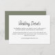 Modern Wedding Details enclosure card with a rustic boho design. With customizable lettering, you can add your names, details and website. The back has a soft sage green color to add contrast. Great for adding a casual and simple touch to your wedding stationary suite.