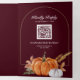 Rustic Boho Pumpkin Photo QR Code Burgundy Wedding Tri-Fold Invitation