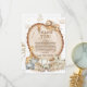 This unique boho baby shower thank you card features a mix of vintage rustic accents in warm tones like beige, fawn, and brown. Adorable jungle animals, including a lion, monkey, tiger, zebra, rhino, elephant, and giraffe, add a playful touch. Elegant pampas grasses and palm leaves complement the wood slice background, creating a cozy and inviting atmosphere.