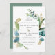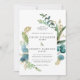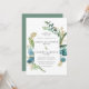 Rustic Boho Teal Blue Botanical Gold Wedding Invitation
