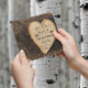 Wedding save the date cards featuring a wood-textured heart attached to a wood stump plus hand-drawn elements and typography design. Add your custom wording to this design by using the "Edit this design template" boxes on the right-hand side of the item, or click the blue "Customize it" button to arrange the text, change the fonts and colors and to also add additional information or images to this design.