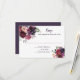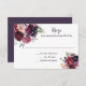 Rustic boho wedding RSVP featuring lush watercolor flowers in purple, violet, pink, mauve, and red with matching greenery. The back of the card is a dark purple. The template is easy to personalize using a mix of fun and handwritten calligraphy fonts. Matching wedding invitation available.