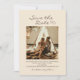"Save the Date" cards with your photo on a boho-style tan background, your text in a stylish, modern handwritten font, and accented with two cute hearts. Personalize with an engagement photo, your names, wedding date and location, and your wedding website.