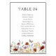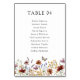 Rustic Boho Wildflower Names Table Number. This unique table number card doubles as a guest list for each table. It features elegant black text on a crisp white background with subtle floral embellishments in warm, earthy hues. This thoughtful detail helps guests feel welcomed and organized while enhancing your table décor with rustic botanical charm.