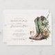 A rustic country bridal shower theme featuring watercolor floral boots and bubbly, against a whitewashed wood background. Dust off your favorite boots and get ready for a memorable gathering filled with laughter, love, and celebration! Order your invites in print, or digital downloads, or both!