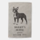 Add rustic charm to your house with this unique garden flag featuring a vintage illustration of a Boston Terrier. This flag can be customized with your name, pet's name, and address against a faux tan burlap background. It's perfect for those looking to bring country warmth to their homes.