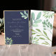 Plain white envelopes are included with paper invitations and will come to fit the invitation size you select. If you don’t need the envelopes, you may choose to not receive them by selecting the dropdown below "Envelopes" and choosing "None." If you’d like to have a design on your envelopes, you can browse all of these available envelopes to find the design that complements your Rustic Botanical Navy Blue Wedding Invitation.