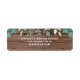 These rustic return address labels are decorated with watercolour leaves in shades of green on a barn wood background.