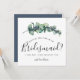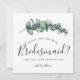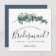 Elegant and minimalist rustic botanical design begins with a sage green eucalyptus branch entwined navy blue privet berries. Will you be my bridesmaid is written below. You can change bridesmaid to flower girl, maid of honor or any other title. This bridal party proposal card is part of the Eucalyptus collection, that contains many other DIY wedding templates that you can use to create a personalized wedding stationery packet. If you don't see a link to the collection or need help with an item, please contact me.
