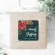 Finish your holiday gifts and mailings with these rustic chic Christmas stickers featuring watercolor leaves, red flowers, pine cones, and holly berries on a rich forest green background. Personalize with a custom holiday greeting and your name beneath.