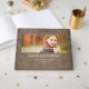 Rustic brown aged burlap linen and white personalized graduation guest book with your photo, school name, and graduation year on the front cover. Contact us for help with customization and matching products.