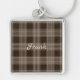 Nice, masculine brown and beige plaid keychain. Add your name to personalize. Nice gift for him!