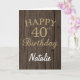 Rustic Brown and Gold Glitter 40th Birthday Card with personalized name. For further customization, please click the "Customize it" button and use our design tool to modify this template.