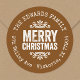 Affordable custom printed round return address stickers personalized with your family name and return address. This rustic modern holiday design features distressed MERRY CHRISTMAS lettering on a brown background. Use the design tools to choose any background color and edit text fonts and colors to further customize your own unique holiday return address labels.