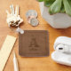 This custom keychain features a rustic faux brown leather texture with your monogram and name to personalize. From our hearts to yours, enjoy!