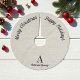 Rustic Brown Grey Christmas Tree Skirt with Faux Linen background, name and monogram. Use personalize this template option to change the text | Use customize further option to change the text style and color if required. Also check out our store collection for more Christmas Tree Skirts.