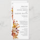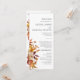 The wedding program features a rustic design with brown foliage and autumn fall colors. It includes elegant floral leaves and botanical elements, showcasing fall earthy tones and a vintage floral wreath. The program outlines the order of the ceremony with classy typography and is designed with whimsical touches for a charming feel. Perfect for an autumn wedding. Fully Customizable. Personalize it with your details.