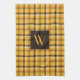Rustic Brown Plaid Pattern Monogram Kitchen Towel